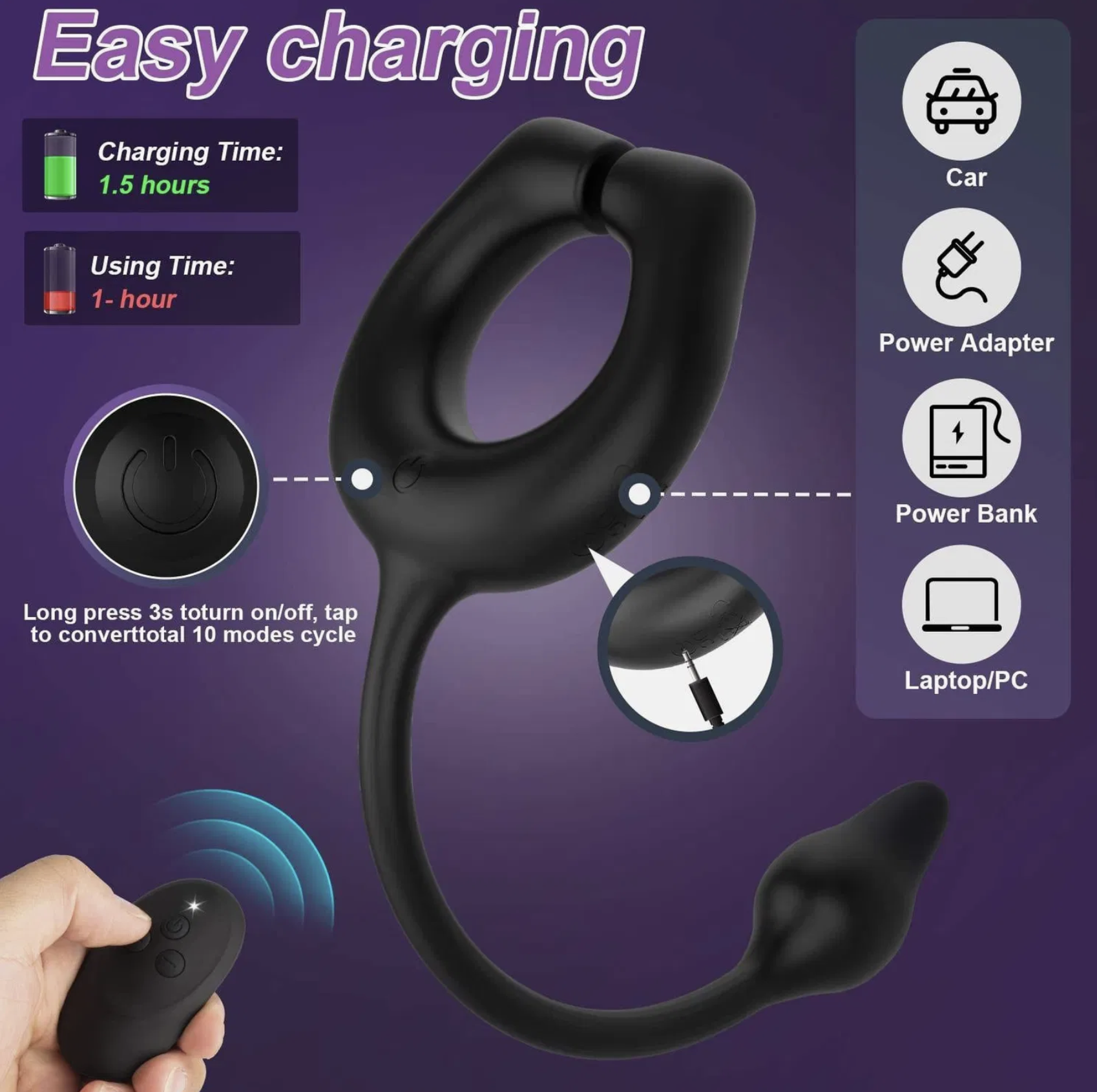 Nuestro anillo de pene mejorado es un juguete sexual multifuncional para parejas utilizado durante las relaciones sexuales, juegos previos o actuaciones en solitario. No es solo un vibrador de clítoris, pezón y punto G para mujeres, sino también un vibrador de anillo de pene y vibrador de tapón anal para hombres. Estimula continuamente tus áreas sensuales y entrena tu sensibilidad para aumentar tu resistencia. Lleva tu orgasmo al siguiente nivel.-