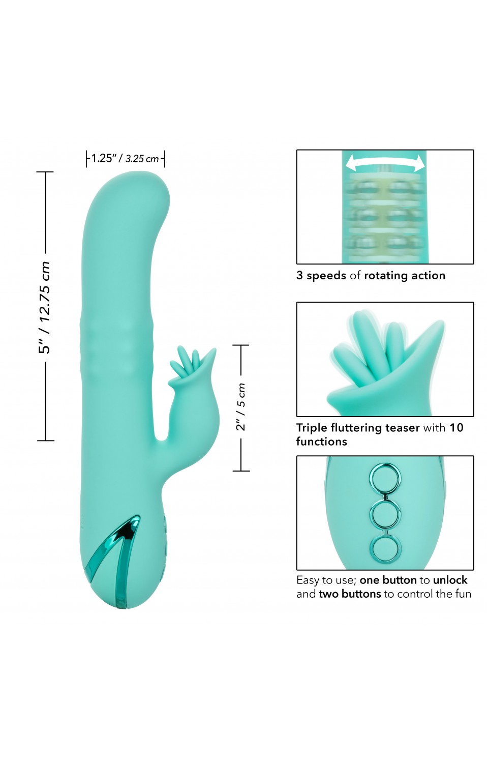 Ya sea que esté buscando subir el calor con un amante o simplemente disfrutar de un momento sensual en solitario, este deslumbrante conejo está listo. Mientras que el juguete de conejo contorneado parpadea y se mueve con tu cuerpo, las 3 velocidades de las cuentas giratorias en el eje ofrecen una estimulación emocionante del punto G.