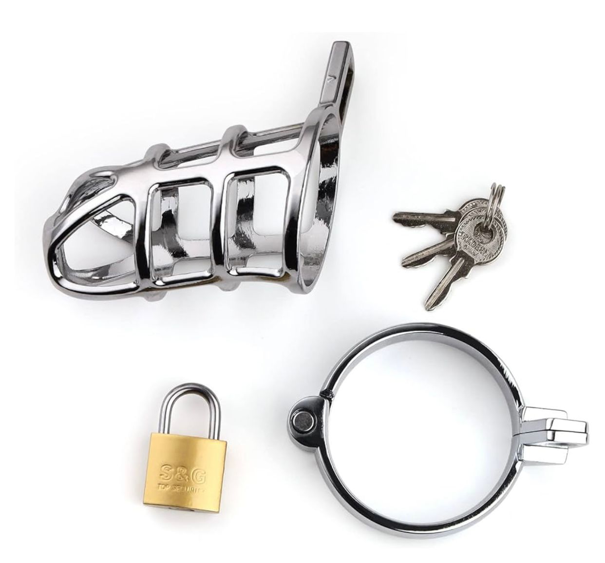 Esta funda para el pene en realidad es un cinturón de castidad metálico fabricado en acero inoxidable.