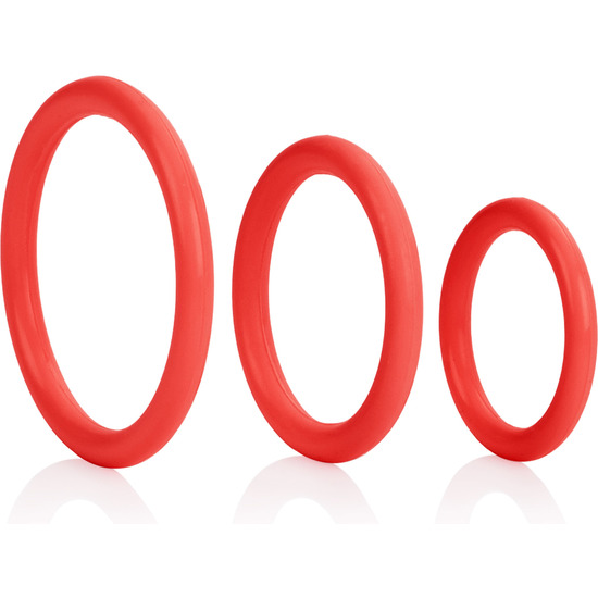 Set de 3 anillas para el pene rojas de diferentes tamaños, con ellas, lograrás erecciones más firmes y más durables con clímax más intensos.